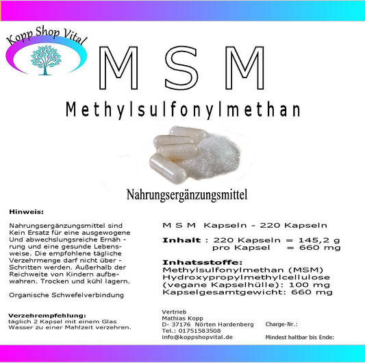 MSM 220 Kapsel Methylsulfonylmethan. Organische Schwefelverbindung.