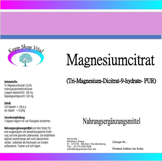 Tri-Magnesiumdicitrat 220 Kapsel (Nachfüllpack)