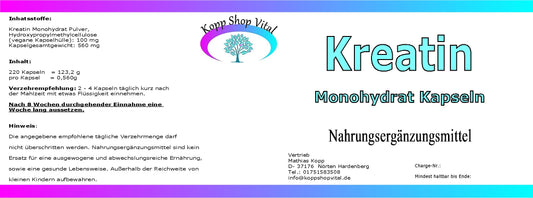 Kreatin Monohydrat 220 Kapseln (Nachfüllpack)