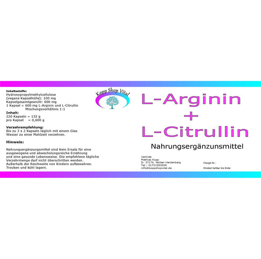 L-Arginin / L-Citrullin Base 220 Kapseln